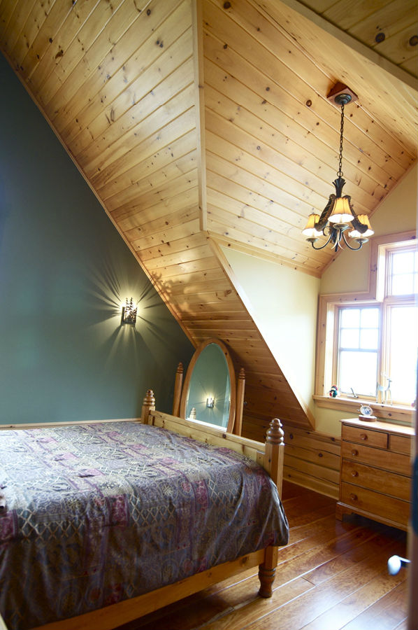 这栋建在半山坡上的木屋,好似一处世外桃源的宫殿。尤其是内部完全木结构的内饰,以前只有在装饰画册上才能看到。赖特曼表示,现代的木屋使用的木头,都是经过木工厂处理成长方形,使木头之间契合紧密。无论是欧洲还是美洲,木屋大多作为度假屋,在城市中还是比较少见。