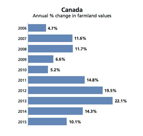 根据加拿大农业信贷(Farm Credit Canada)的 Farmland Values Report