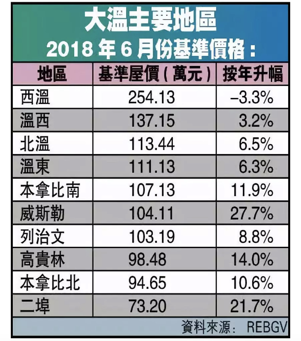 6月份大温区基准屋价为109.36万元,按年上升9.5%,与对上一个月比较则大致相同。其中独立屋基准价为159.82万元,较2017年同期上升0.7%,比5月份则减少0.6%,成交量则有766间,较2017年同期减少42%。