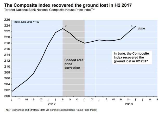 国家银行的报告显示,并不是全国所有的市场都在恢复,多伦多的房价指数仍然比一年前低2.8%,汉密尔顿(Hamilton)则低0.4%。