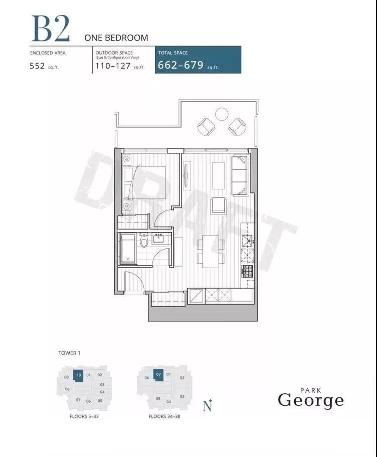 该楼盘由著名开发商Concord Pacific精心推出,位于最繁盛的商圈地带,不仅有着市中心的喧闹生机,又同时拥有周边250多个公园和6679英亩绿地,更有“公园之城”之美誉!Park George得力于此,成为休闲放松的绝佳选择,旁边著名的Holland Park荷兰绿荫公园及Green Timbers森林步道,更是堪称天然氧吧!