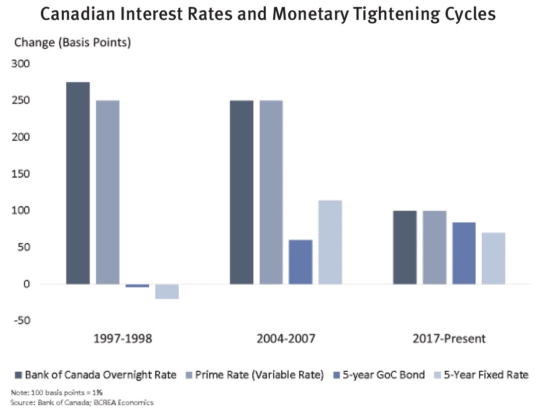加拿大银行调整借款利率,必将会对整个经济带来影响。然而,货币政策对贷款的影响只是一个方面。纵观过去的紧缩周期,会发现,银行贷款利率的变化完全取决于央行的目的。