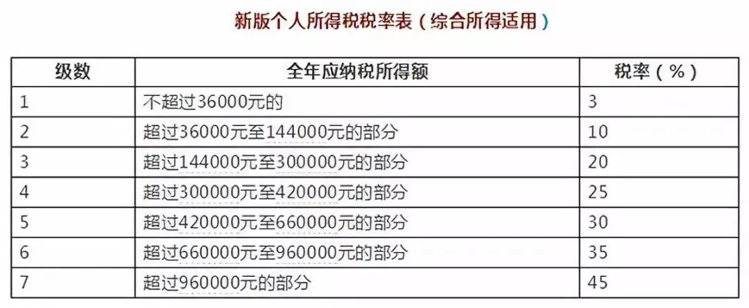 新个税法于2019年1月1日起施行,2018年10月1日起施行最新起征点和税率。附上个税综合所得税率表: