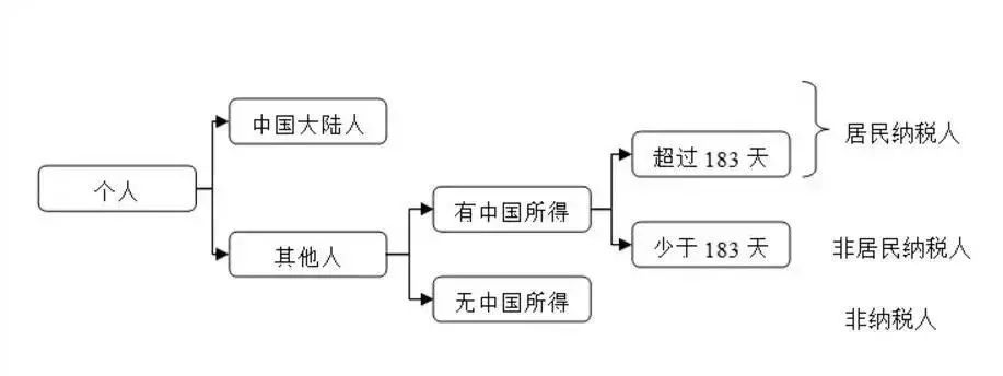 也就是说不管你是中国公民、外国公民、还是持其他国家永久居留权的中国公民,无论你在中国境内有无住所,只要一年内在中国居住满183天,就认定为中国税务居民,只要你是税务居民个人,你无论从中国境内还是境外取得的所得,都需要依照新《个税法》向中国缴纳个人所得税。
