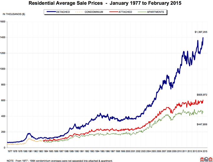 独立屋在2015年2月份的销售数量为1,296,比2014年2月份的1,032多了25.6%,比2013年2月份的704多了84.1%。大温地区独立屋的基准价格比2014年同期高出了9.7%,为$1,026,300。