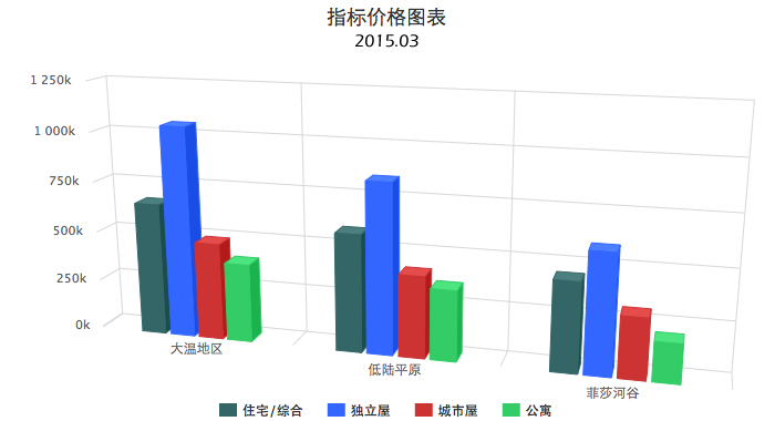 公寓在2015年3月份的销售数量为1,627,比2014年3月份的1,106多了47.1%,比2013年3月份的982多了65.7%。大温地区公寓的基准价格为$390,200,比2014年同期高出了3.3%。