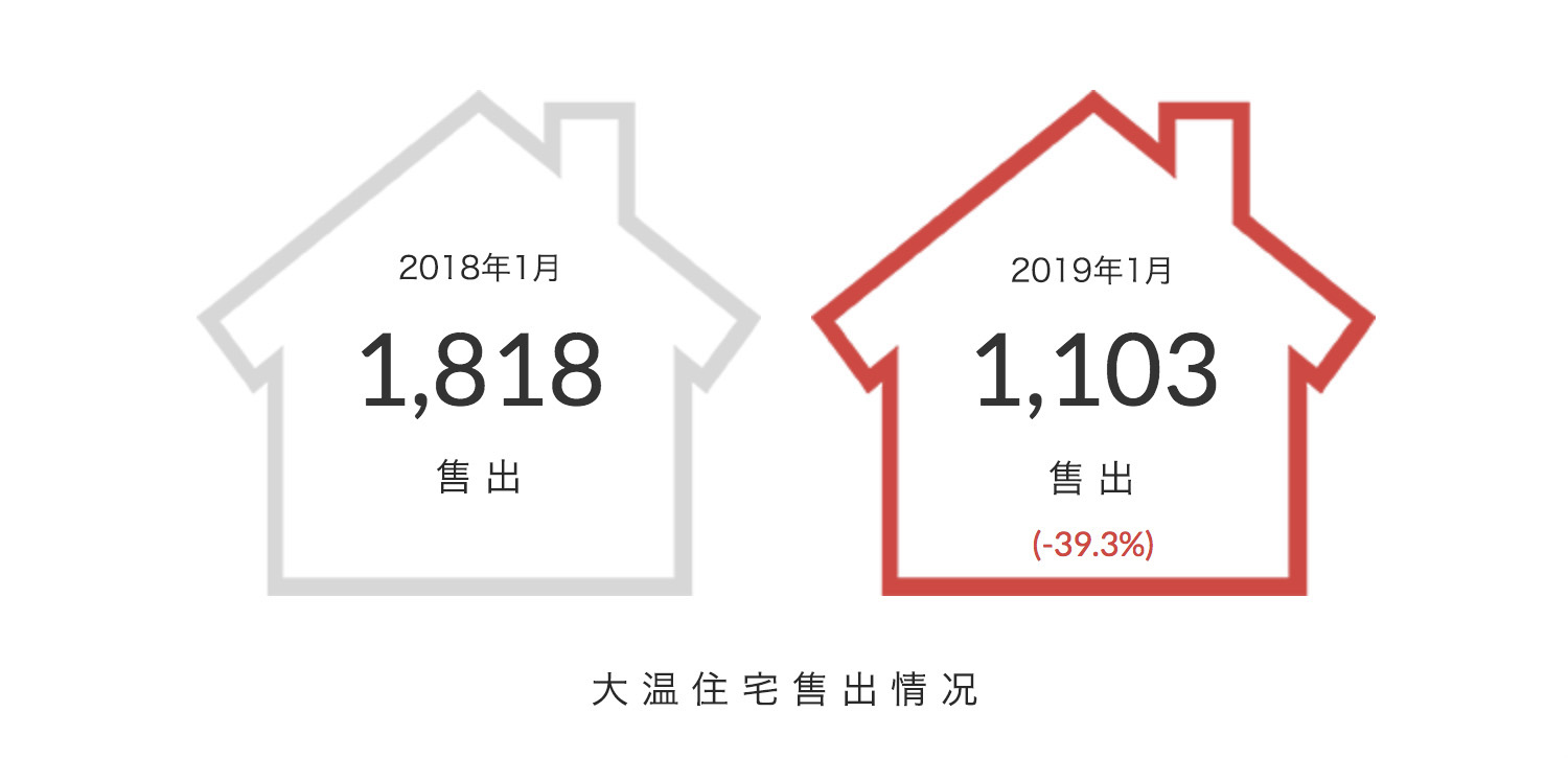 2019年1月该地区的住宅销售总量为1,103套,比2018年1月的1,818套销售量下降39.3%,比2018年12月的1,072套增加了2.9%。上个月的销售额比1月份的10年销售额低36.3%,是自2009年以来最低的1月份销售总额。