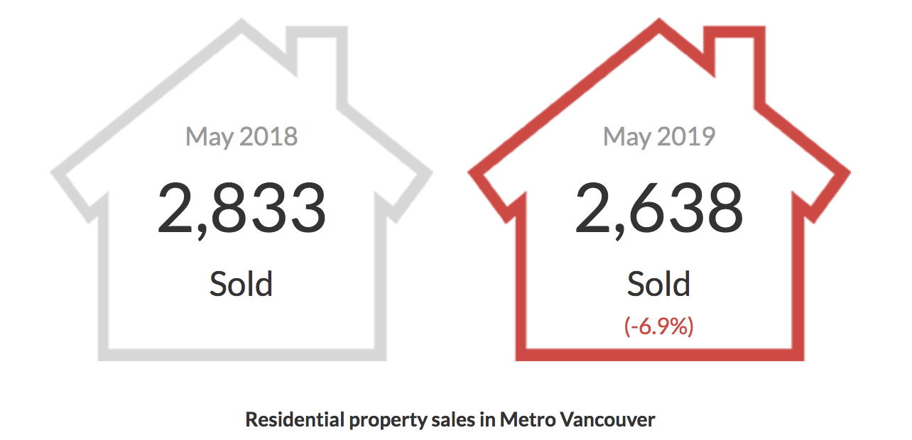 2019年5月的公寓销售量达到1,246套,比2018年5月的1,431套减少了12.9%。公寓住宅的基准价格为$664,200。这比2018年5月减少了7.3%,比过去六个月减少了2%,与2019年4月相比减少了0.5%。