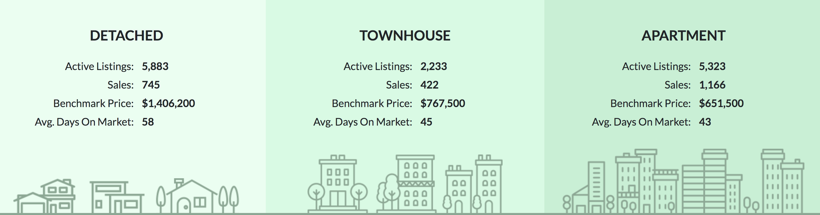 2019年9月的独立屋销售达到745套,比2018年9月记录的508套独立屋销售增长46.7%。独立屋的基准价格为$1,406,200。与2018年9月相比下降了8.6%,与2019年8月相比几乎没有变化。