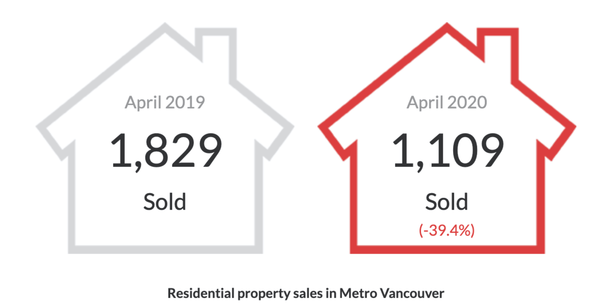 目前在大温哥华的MLS®系统上挂牌出售的房屋总数为9,389套,与2019年04月(14,357套)相比下降了34.6%,与2020年3月(9,606)相比下降了2.3%。