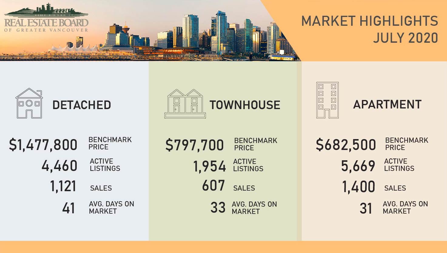 2020年7月,独立屋销售达到1,121套,比2019年7月记录的841套独立屋销售增长33.3%。独立屋的基准价格为$1,477,800。这比2019年7月增加了5%,比2020年6月增加了0.9%。