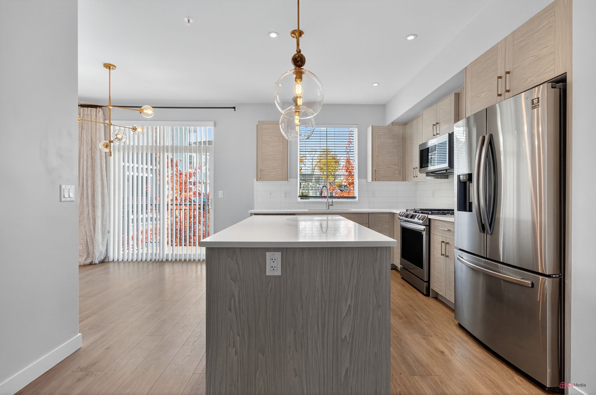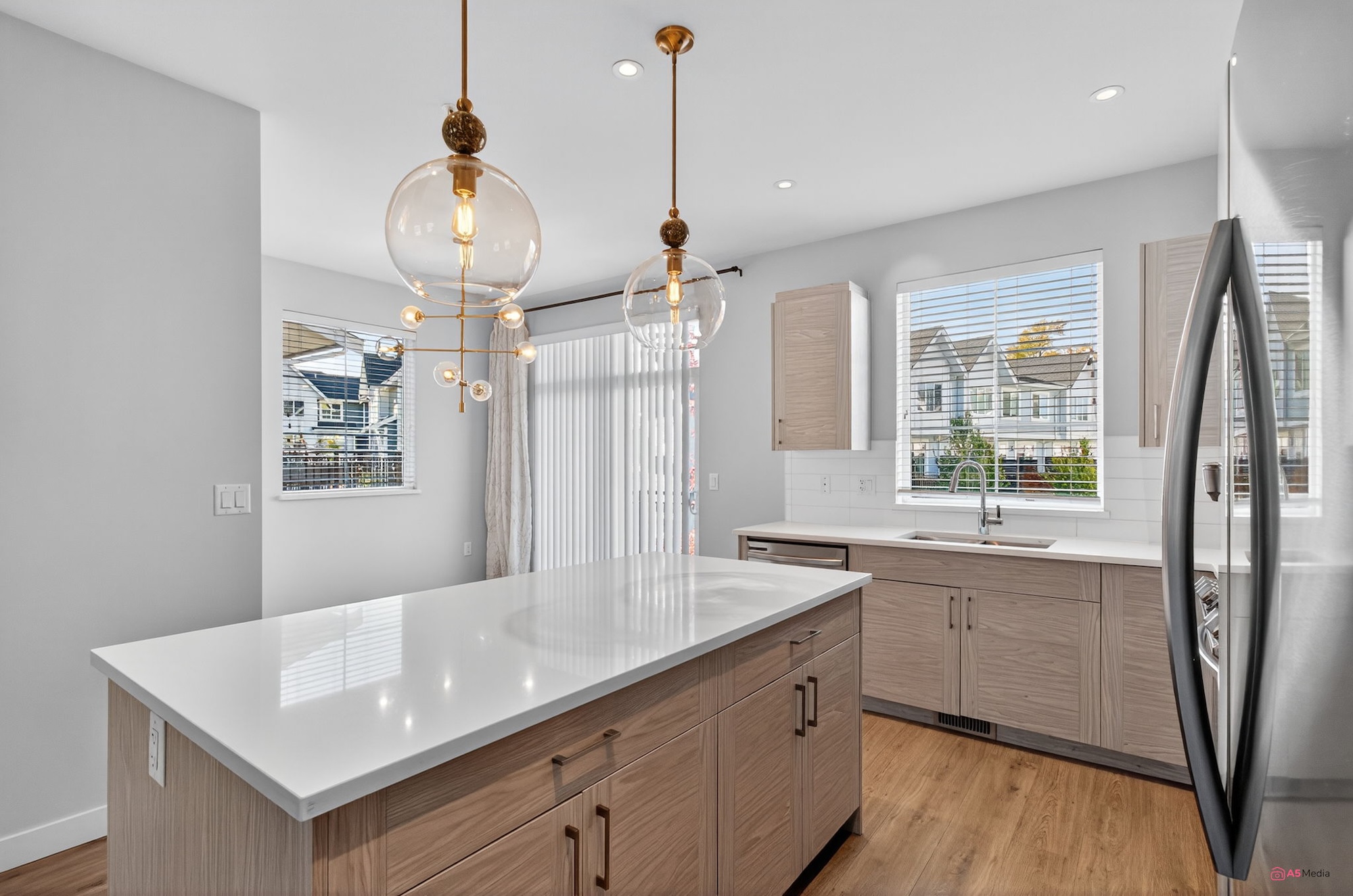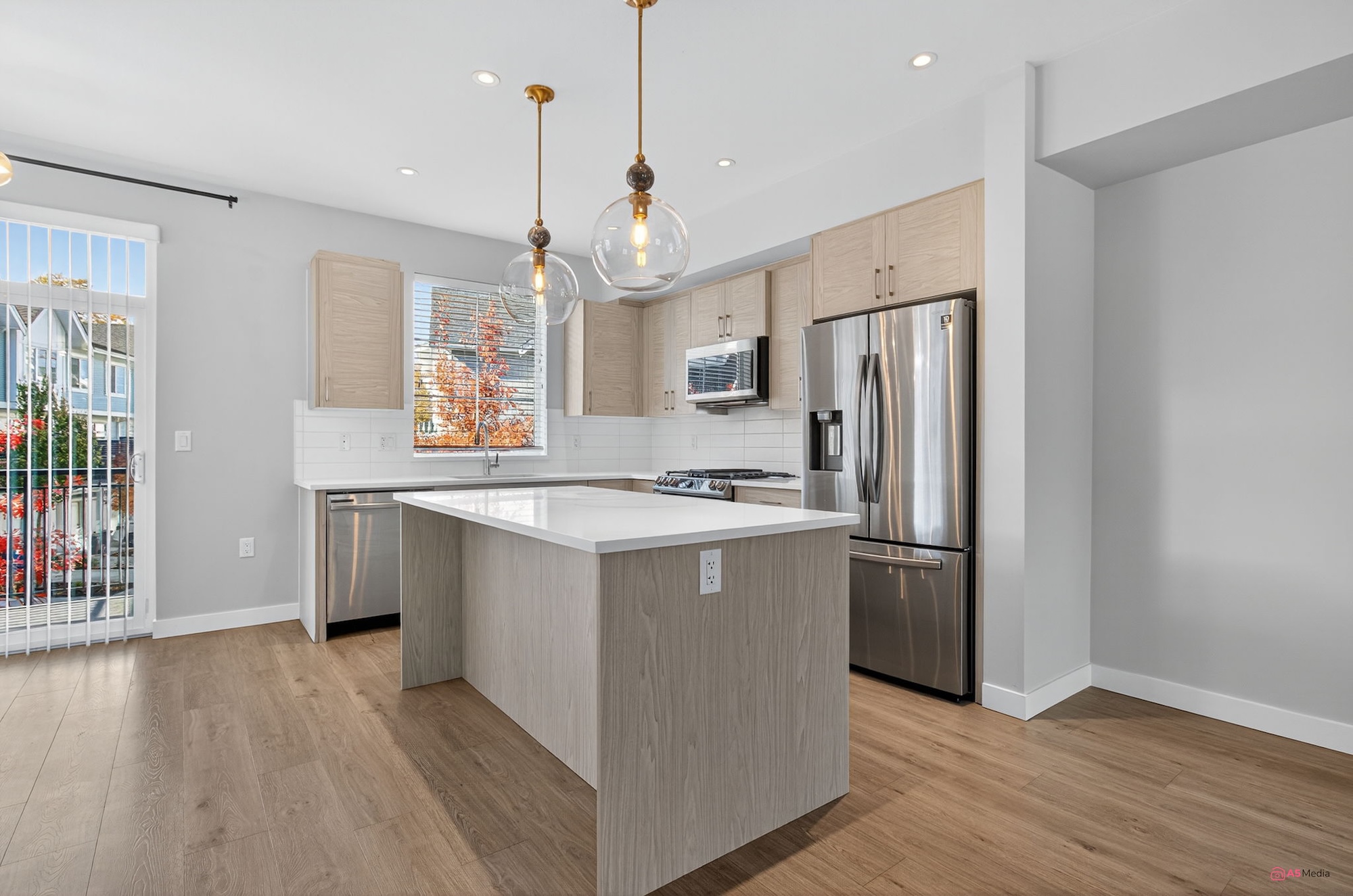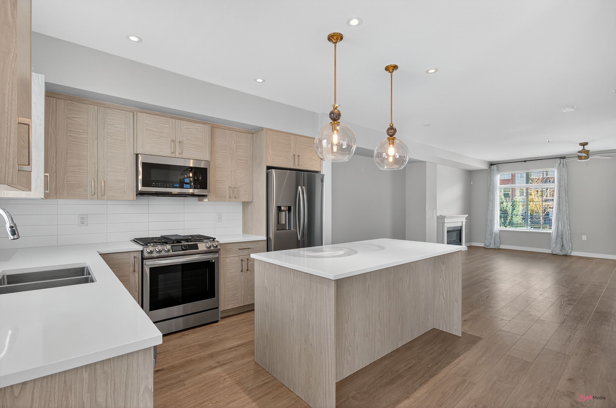 Experience modern living in this elegant 1,866 sq.ft. 3-level end-unit townhouse in desirable Willoughby. Bright and spacious, it offers 3 bedrooms, 3.5 baths, 9’ ceilings, oversized windows, and natural gas forced-air heating. The main level features an open living/dining area and modern kitchen with premium finishes. Upstairs includes two bedrooms plus a luxurious primary suite with walk-in closet and ensuite. The lower level provides a flex space with full bath - ideal for an office, family room, or guest suite. AC unit (rear right) rented from Reliance. Close to top schools, parks, shops, and transit. This home has it all. Call now for private show!