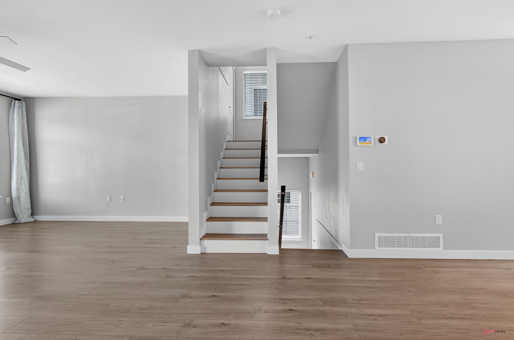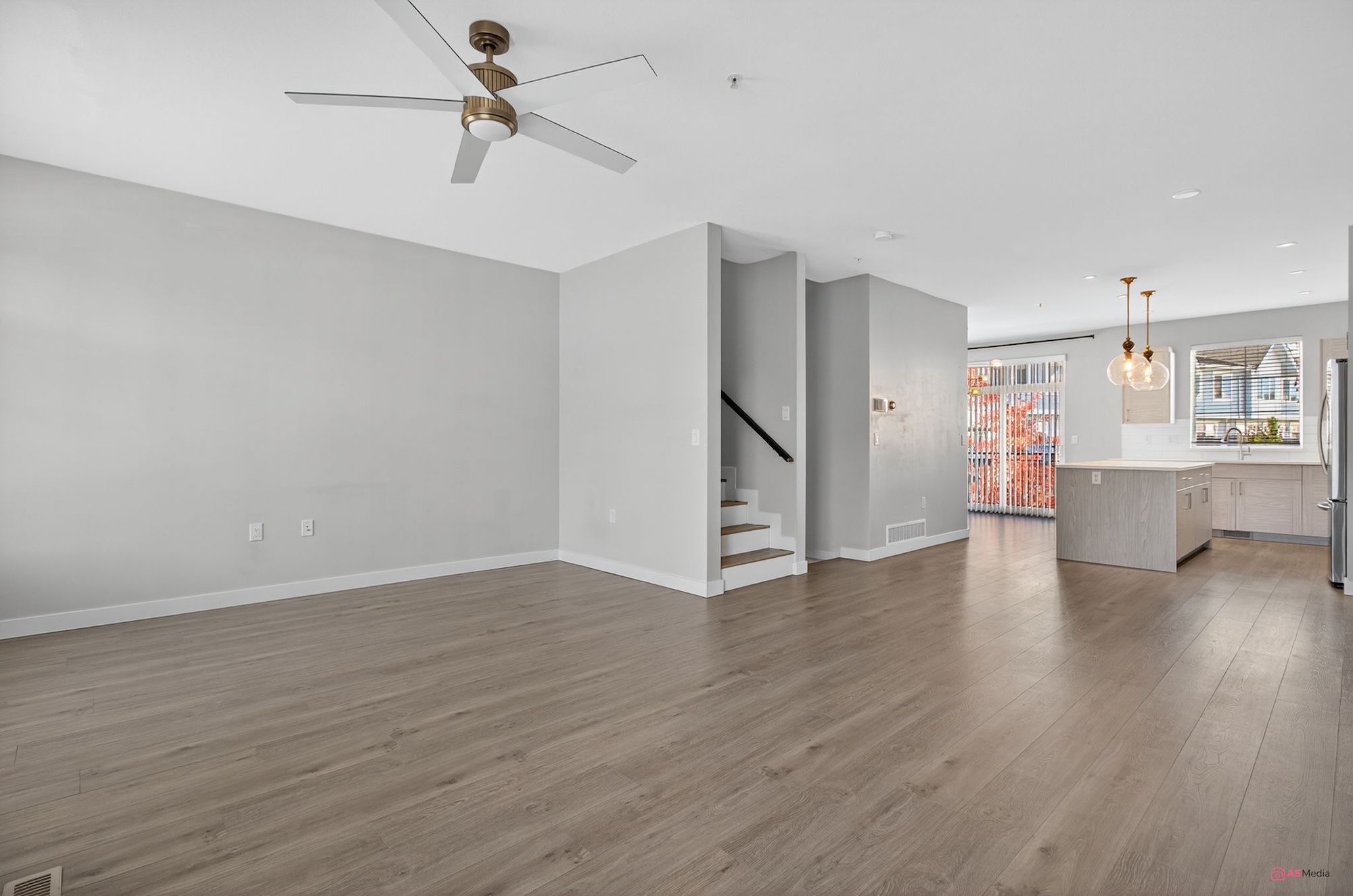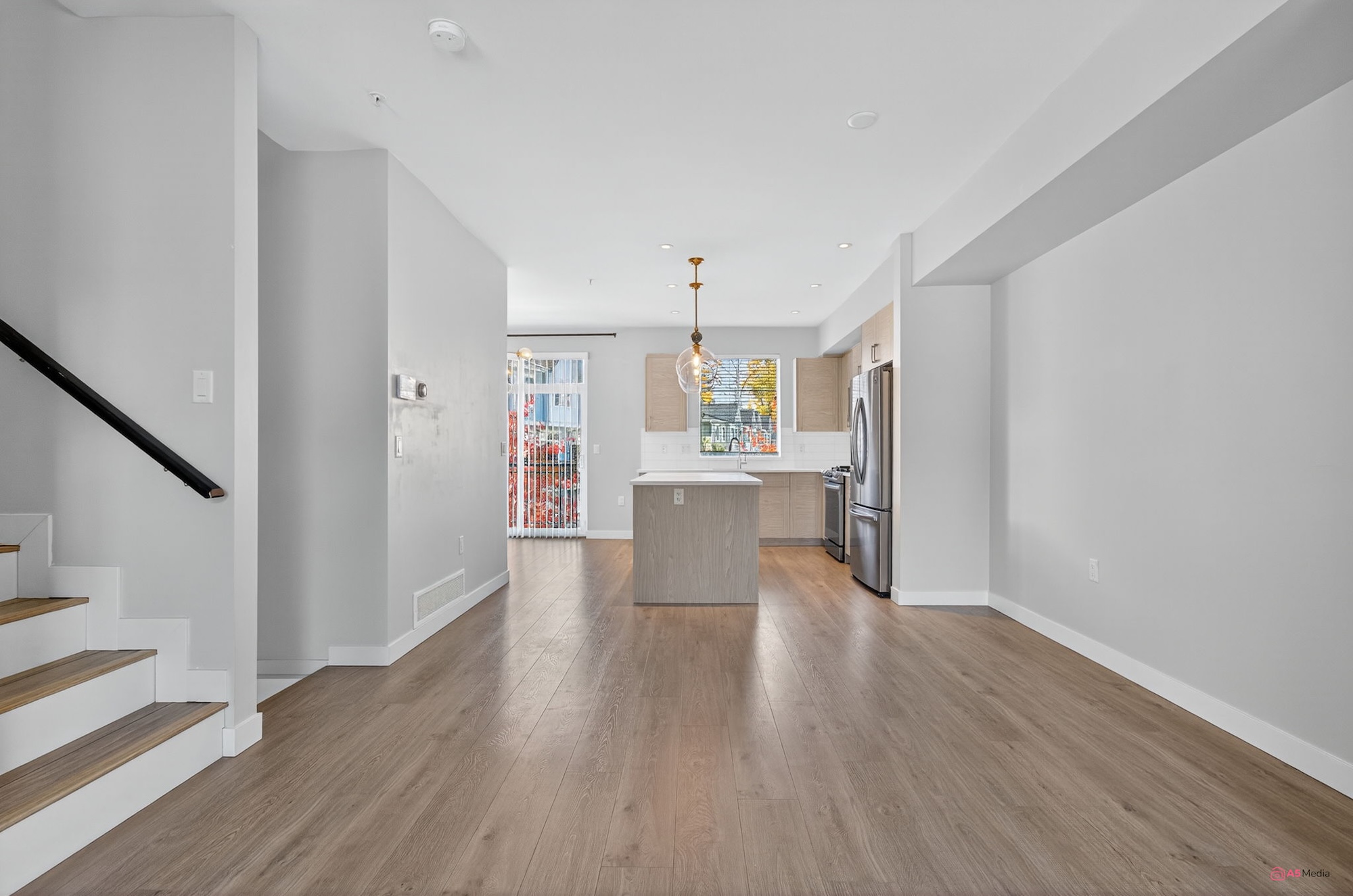 Experience modern living in this elegant 1,866 sq.ft. 3-level end-unit townhouse in desirable Willoughby. Bright and spacious, it offers 3 bedrooms, 3.5 baths, 9’ ceilings, oversized windows, and natural gas forced-air heating. The main level features an open living/dining area and modern kitchen with premium finishes. Upstairs includes two bedrooms plus a luxurious primary suite with walk-in closet and ensuite. The lower level provides a flex space with full bath - ideal for an office, family room, or guest suite. AC unit (rear right) rented from Reliance. Close to top schools, parks, shops, and transit. This home has it all. Call now for private show!