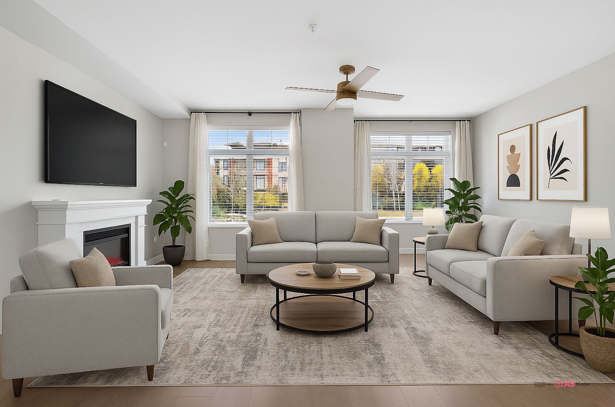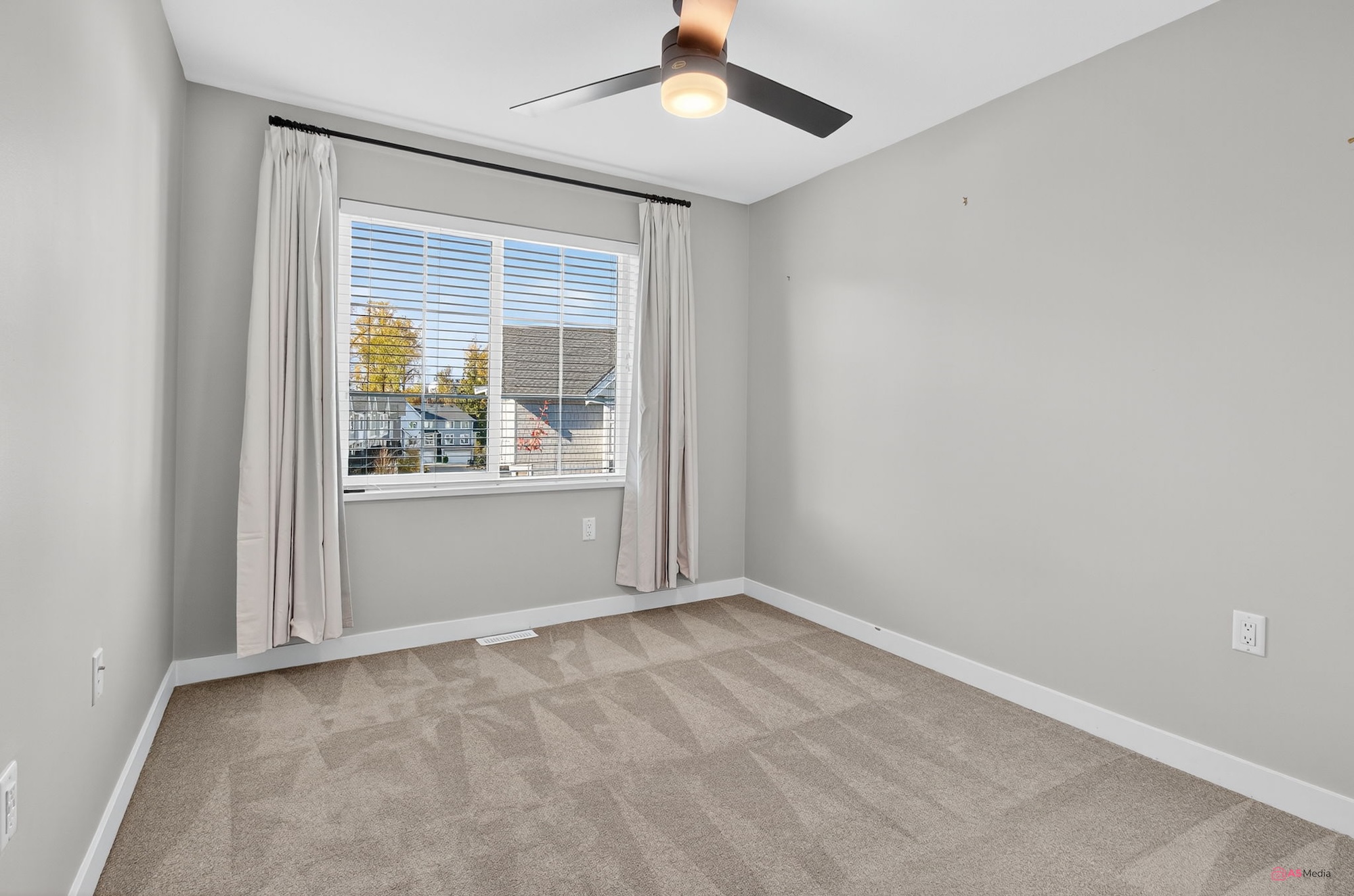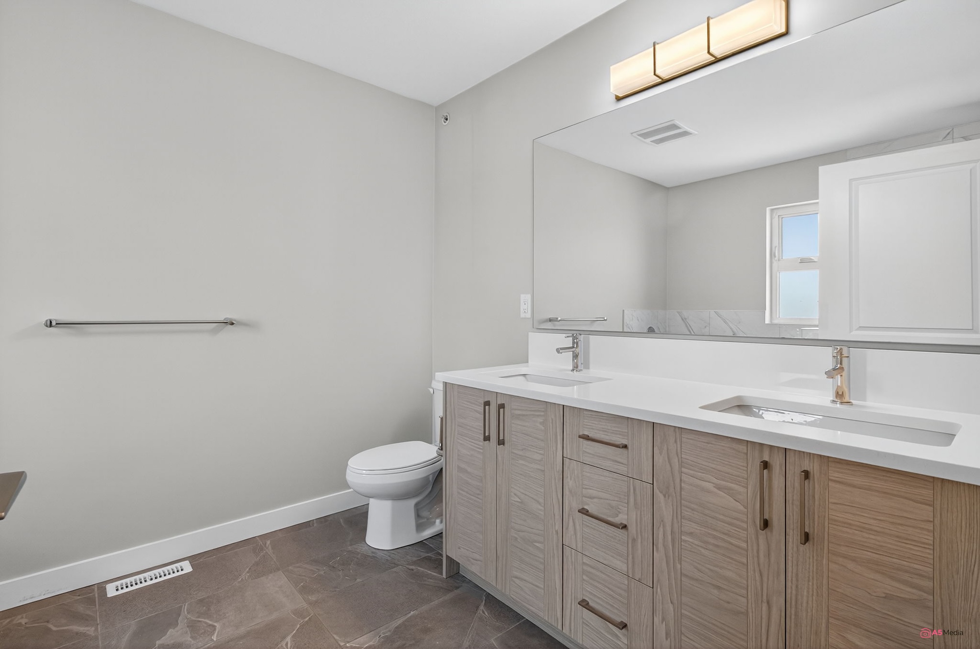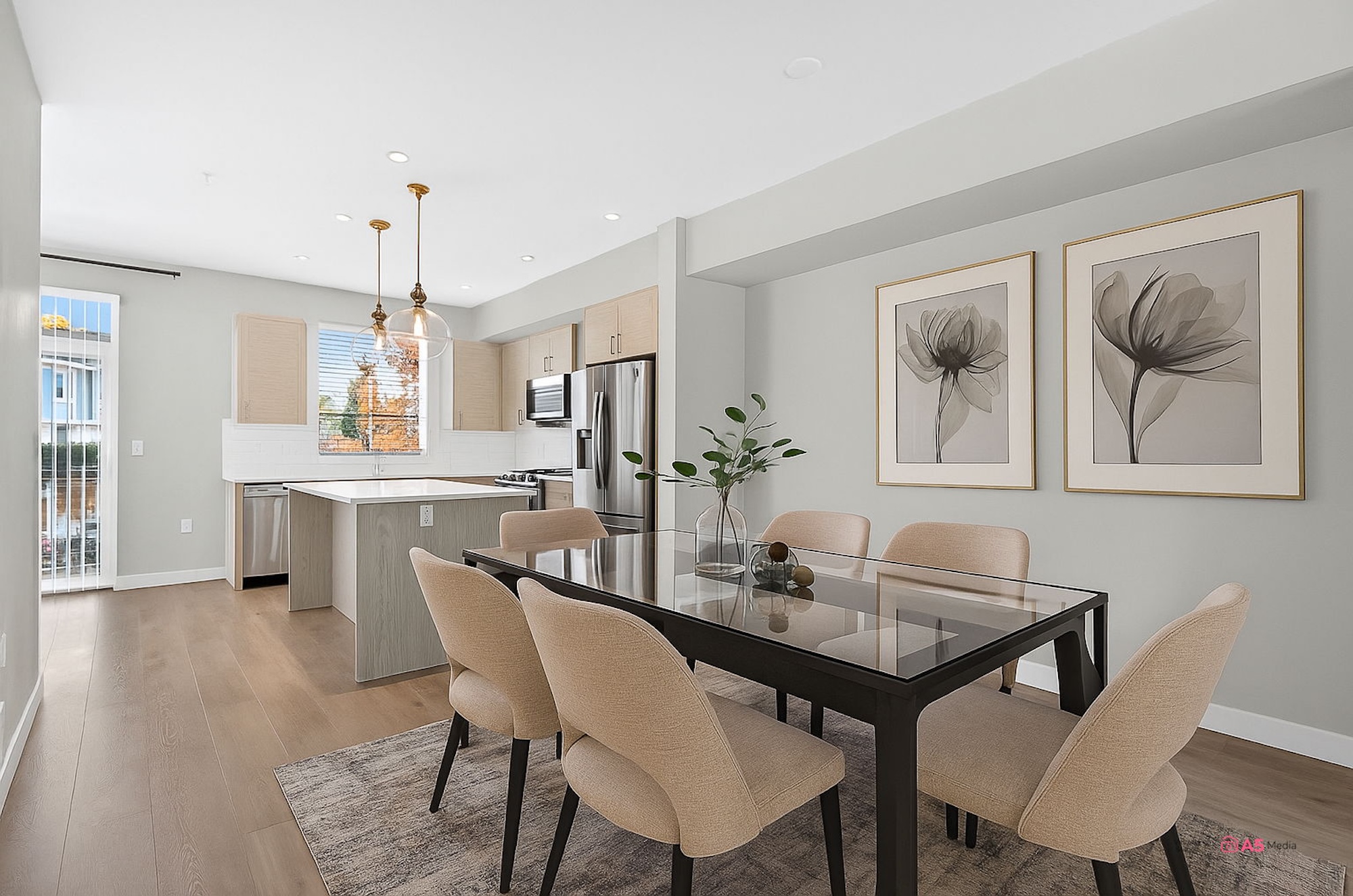 Experience modern living in this elegant 1,866 sq.ft. 3-level end-unit townhouse in desirable Willoughby. Bright and spacious, it offers 3 bedrooms, 3.5 baths, 9’ ceilings, oversized windows, and natural gas forced-air heating. The main level features an open living/dining area and modern kitchen with premium finishes. Upstairs includes two bedrooms plus a luxurious primary suite with walk-in closet and ensuite. The lower level provides a flex space with full bath - ideal for an office, family room, or guest suite. AC unit (rear right) rented from Reliance. Close to top schools, parks, shops, and transit. This home has it all. Call now for private show!